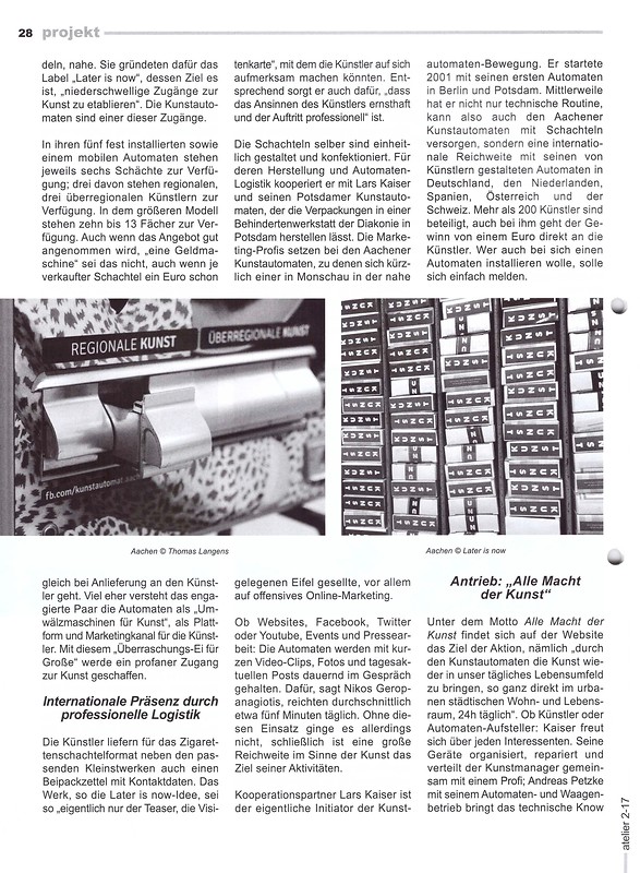 Die Zeitschrift für Künstlerinnen und Künstler